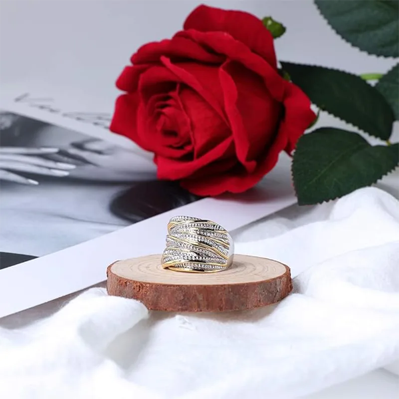 ফ্যাশন মাল্টি-লেয়ার ইন্টারউভেন ডিজাইন: এই অ্যালয় মহিলাদের ফ্যাশন রিং একটি ইন্টারবোভেন ডিজাইন গ্রহণ করে, একটি সমৃদ্ধ ত্রিমাত্রিক প্রভাব উপস্থাপন করে। এর প্রশস্ত আকৃতি ফ্যাশন প্রবণতার সাথে সামঞ্জস্যপূর্ণ এবং এটি একটি ককটেল রিং বা থাম্ব রিং হিসাবে খুব উপযুক্ত, যারা সাহসী শৈলী অনুসরণ করেন তাদের জন্য আদর্শ।