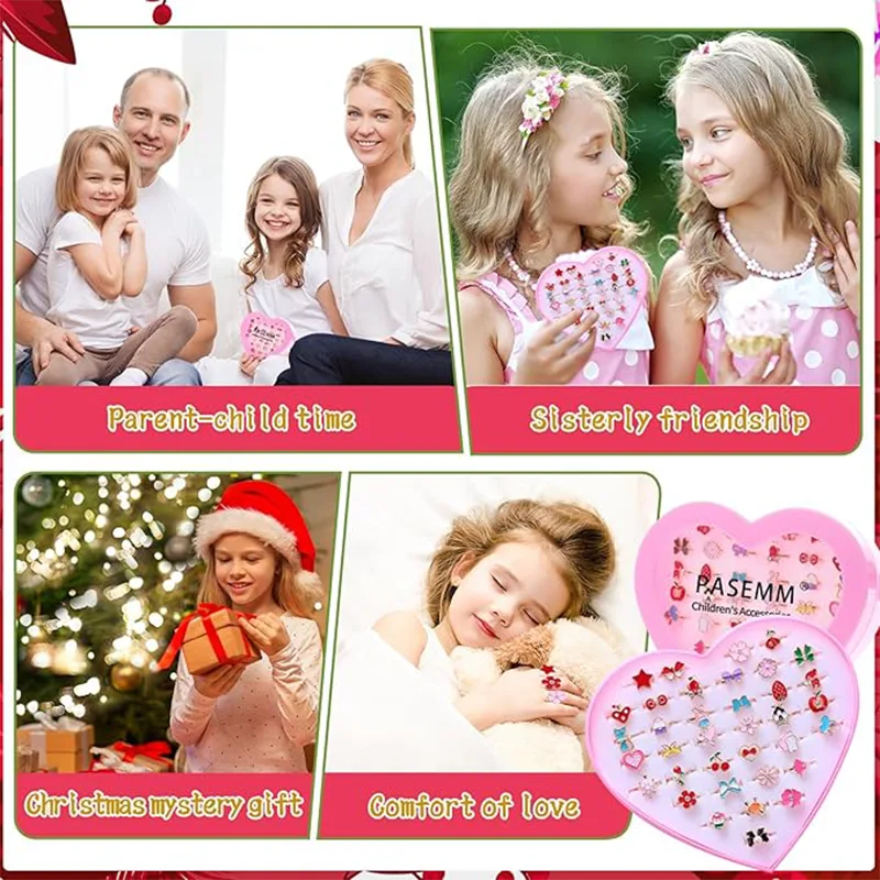 এই মেয়েটির আংটিগুলি একটি হৃদয় আকৃতির গোলাপী বাক্সে স্থাপন করা হয়। বক্স প্যাকড কিড রিং হল 4 থেকে 12 বছর বয়সী মেয়েদের জন্য সেরা ক্রিসমাস এবং জন্মদিনের উপহার। চমৎকার প্যাকেজিংটি জন্মদিনের পার্টি, গিফট ফিলার, গিফট ব্যাগ ফিলার, পার্টি পুরস্কার, হ্যালোইন, ভ্যালেন্টাইনস ডে, পার্টি সাজসজ্জা এবং গার্ল পার্টি সরবরাহের মতো মৌসুমী ক্রিয়াকলাপগুলির জন্য উপযুক্ত। মেয়েদের গয়না আংটির সংগ্রহের এই সেটটি 4 থেকে 12 বছর বয়সী মেয়েদের জন্য নিখুঁত এবং আরাধ্য ক্রিসমাস এবং জন্মদিনের উপহার।