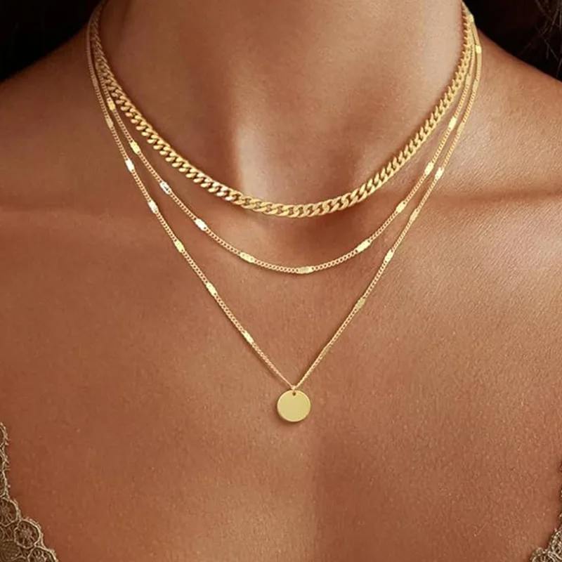 মহিলাদের সোনার প্রলেপযুক্ত মহিলাদের ফ্যাশন নেকলেসটিতে তিনটি ভিন্ন ডিজাইনের নেকলেস রয়েছে, যথা কিউবান চেইন, পয়েন্টেড চেইন এবং কয়েন চেইন, যা আলাদাভাবে পরা যায় বা স্ট্যাক করা যায়। সংক্ষিপ্ত 13.8-ইঞ্চি কিউবান চেইন (5 মিমি চওড়া) বিপরীতমুখী এবং সূক্ষ্ম, মাঝারি 15-ইঞ্চি পয়েন্টেড পেন্ডেন্ট চেইনটি সহজ এবং ঝরঝরে এবং দীর্ঘ 17-ইঞ্চি মুদ্রার চেইনটি বহুমুখী এবং মার্জিত। তিনটি শৈলী একে অপরের পরিপূরক, স্তুপীকৃত হলে লেয়ারিং এর একটি শক্তিশালী অনুভূতি তৈরি করে এবং একা পরিধান করার সময় প্রতিটির নিজস্ব আকর্ষণ থাকে।
